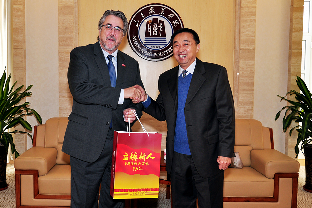 馬慶(qing)渭(wei)向(xiang)Gilbert Heroux先生一行到訪表示(shi)歡(huan)迎(ying),就(jiu)山東(dong)職(zhi)業學(xue)院(yuan)(yuan)國(guo)(guo)際(ji)教育(yu)(yu)交流(liu)(liu)(liu)與合作情況(kuang)作簡(jian)要說明,詳細介紹了學(xue)院(yuan)(yuan)與德國(guo)(guo)、韓國(guo)(guo)、澳大利亞、西班牙、新加坡、臺灣等(deng)國(guo)(guo)家和地區的(de)院(yuan)(yuan)校建立的(de)友好院(yuan)(yuan)校關(guan)系。馬慶(qing)渭(wei)表示(shi),學(xue)院(yuan)(yuan)重(zhong)視國(guo)(guo)際(ji)教育(yu)(yu)交流(liu)(liu)(liu)與合作,注重(zhong)汲取(qu)國(guo)(guo)外現(xian)代優秀教育(yu)(yu)理念,希望能以Gilbert Heroux先生此次(ci)到訪為契(qi)機(ji),院(yuan)(yuan)校雙(shuang)方(fang)就(jiu)師(shi)資培(pei)訓(xun)、師(shi)生交流(liu)(liu)(liu)互訪等(deng)項目進行探討與交流(liu)(liu)(liu),促(cu)進學(xue)院(yuan)(yuan)國(guo)(guo)際(ji)交流(liu)(liu)(liu)與合作,提(ti)高辦學(xue)水(shui)平,提(ti)升人(ren)才培(pei)養質(zhi)量。
