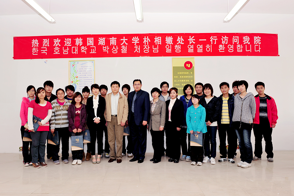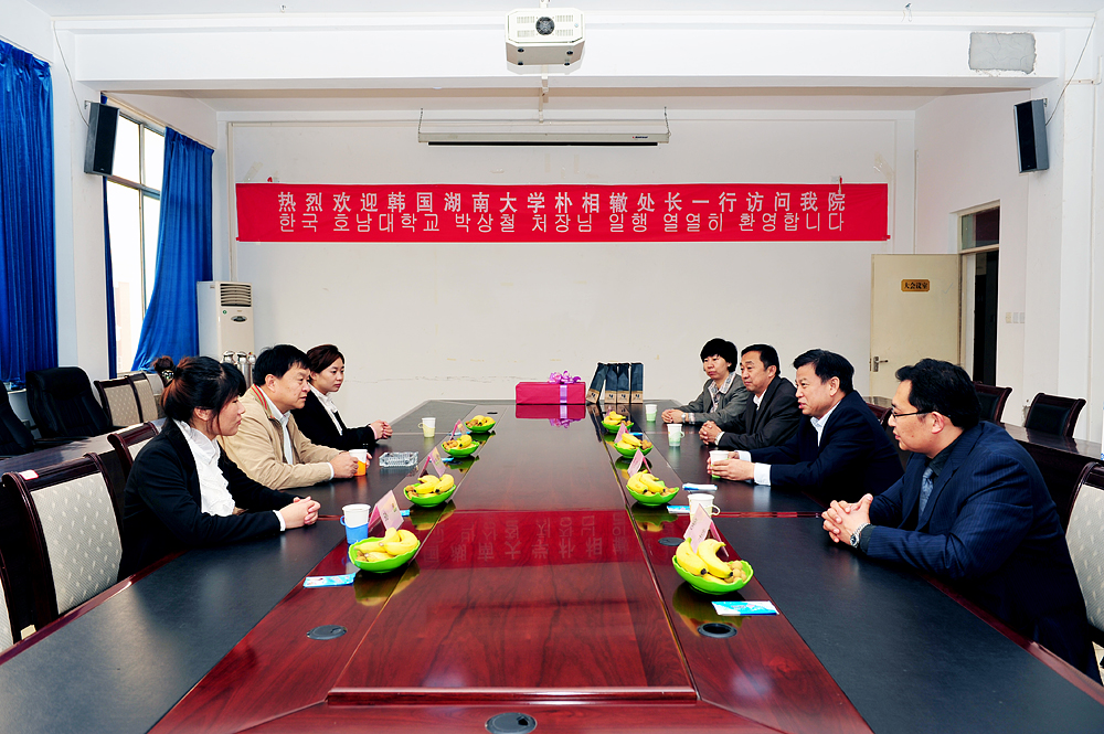 學(xue)(xue)院(yuan)(yuan)黨委書(shu)記(ji)(ji)劉邦治(zhi)、副院(yuan)(yuan)長馬慶(qing)渭在學(xue)(xue)院(yuan)(yuan)會議(yi)室與客人進行(xing)了親切會談。在提(ti)到中韓(han)(han)合(he)作(zuo)(zuo)(zuo)辦(ban)(ban)學(xue)(xue)項目(mu)時,劉書(shu)記(ji)(ji)指(zhi)出,近年來(lai),學(xue)(xue)院(yuan)(yuan)一直把(ba)對(dui)外合(he)作(zuo)(zuo)(zuo)辦(ban)(ban)學(xue)(xue)作(zuo)(zuo)(zuo)為提(ti)升(sheng)學(xue)(xue)院(yuan)(yuan)核心競爭(zheng)力(li)的(de)(de)重要舉措(cuo)。作(zuo)(zuo)(zuo)為提(ti)升(sheng)學(xue)(xue)院(yuan)(yuan)內(nei)涵(han)建設的(de)(de)主題之一,學(xue)(xue)院(yuan)(yuan)有信心也有能力(li)把(ba)中韓(han)(han)合(he)作(zuo)(zuo)(zuo)辦(ban)(ban)學(xue)(xue)項目(mu)辦(ban)(ban)好、辦(ban)(ban)大(da)、辦(ban)(ban)強(qiang)。馮院(yuan)(yuan)長表(biao)示,韓(han)(han)國湖南大(da)學(xue)(xue)將一如(ru)既往地支(zhi)持學(xue)(xue)院(yuan)(yuan)對(dui)外合(he)作(zuo)(zuo)(zuo)項目(mu),并祝愿雙方合(he)作(zuo)(zuo)(zuo)水平(ping)更(geng)上(shang)新的(de)(de)臺階。