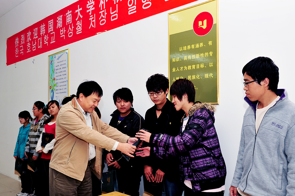 馮院長首先(xian)與學(xue)(xue)(xue)院中韓(han)合作班(ban)的(de)老師及同(tong)學(xue)(xue)(xue)們進行見面會,在詳細了解了同(tong)學(xue)(xue)(xue)們的(de)學(xue)(xue)(xue)習(xi)情況后(hou),馮院長代表韓(han)方向同(tong)學(xue)(xue)(xue)們贈送了學(xue)(xue)(xue)習(xi)書籍(ji)和禮品,鼓勵同(tong)學(xue)(xue)(xue)們在今后(hou)的(de)學(xue)(xue)(xue)習(xi)中要更加(jia)努(nu)力,更加(jia)積極。