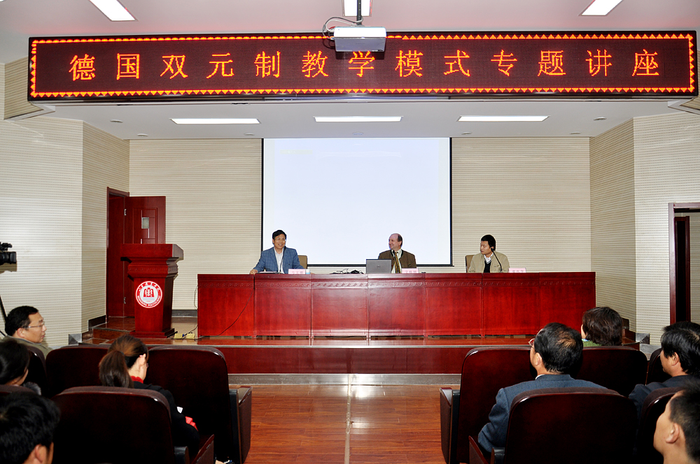 11月4日,德國蘭(lan)德舒特高等技術學(xue)院院長(chang)Aigner(艾格納)博士到訪山東職(zhi)業學(xue)院作《德國“雙元(yuan)制”教(jiao)學(xue)模式(shi)》專(zhuan)場學(xue)術講座(zuo)。學(xue)院黨(dang)委副(fu)(fu)書記、常務副(fu)(fu)院長(chang)馬文卿出席并主持(chi)講座(zuo),副(fu)(fu)院長(chang)祝瑞花、各系主任、教(jiao)研室(shi)主任、教(jiao)師及學(xue)生代(dai)表與會聽取專(zhuan)家報(bao)告。