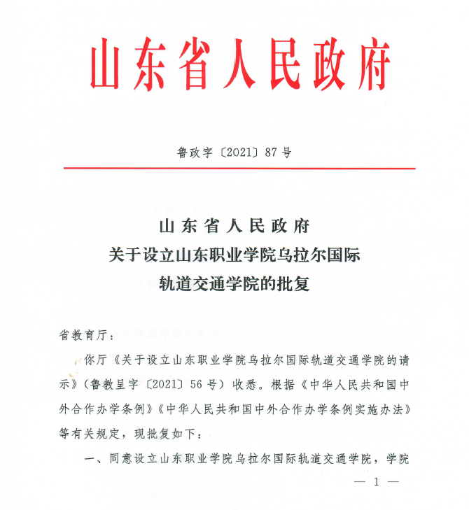 2021年7月,我校與俄羅斯烏拉爾國立交通大學合作設立中外合作辦學機構——“山東職業學院烏拉爾國際軌道交通學院”,中俄兩校共建課程、共享師資、聯合科研,實現了我省職業教育中外合作辦學機構零的突破。學院開設建鐵道供電技術、鐵道工程技術、鐵道信號自動控制專業,學制三年,旨在創新培養具有國際視野、通曉國際規則、能夠參與國際事務和國際競爭的軌道交通高水平、高素質技術技能人才。