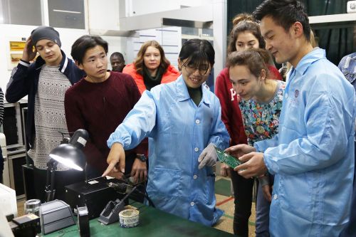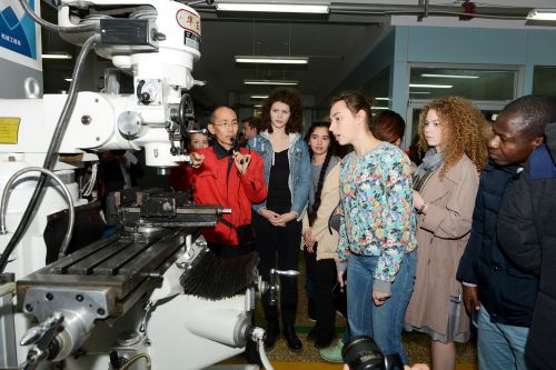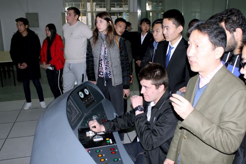 為確保此次認(ren)知實(shi)(shi)(shi)(shi)習(xi)取得良好(hao)(hao)效果,學(xue)(xue)(xue)院前期(qi)為學(xue)(xue)(xue)生(sheng)(sheng)(sheng)講解員和志愿(yuan)者進行了專(zhuan)業英語培(pei)訓(xun),并(bing)安排“雙(shuang)語”教(jiao)師(shi)(shi)在(zai)各(ge)實(shi)(shi)(shi)(shi)驗(yan)實(shi)(shi)(shi)(shi)訓(xun)場所做好(hao)(hao)講授。在(zai)機(ji)(ji)械制造工藝實(shi)(shi)(shi)(shi)訓(xun)車間、自動化(hua)生(sheng)(sheng)(sheng)產線實(shi)(shi)(shi)(shi)訓(xun)室(shi)(shi)、數控(kong)(kong)銑床(chuang)裝調實(shi)(shi)(shi)(shi)訓(xun)室(shi)(shi),在(zai)現代通信技(ji)術綜合實(shi)(shi)(shi)(shi)訓(xun)基地、SMT實(shi)(shi)(shi)(shi)訓(xun)室(shi)(shi)、鐵(tie)路施工技(ji)術實(shi)(shi)(shi)(shi)訓(xun)場,留(liu)(liu)學(xue)(xue)(xue)生(sheng)(sheng)(sheng)們認(ren)真觀察、詳細(xi)了解各(ge)實(shi)(shi)(shi)(shi)訓(xun)設施設備性能(neng)及工作原理,對“教(jiao)學(xue)(xue)(xue)做”一體化(hua)課堂環境贊不絕口(kou)。在(zai)機(ji)(ji)器人創新實(shi)(shi)(shi)(shi)訓(xun)室(shi)(shi),留(liu)(liu)學(xue)(xue)(xue)生(sheng)(sheng)(sheng)們對中(zhong)國學(xue)(xue)(xue)生(sheng)(sheng)(sheng)制作的(de)機(ji)(ji)器人產生(sheng)(sheng)(sheng)了濃厚(hou)興趣,躍躍欲試操作控(kong)(kong)制。在(zai)軌(gui)道交通綜合實(shi)(shi)(shi)(shi)訓(xun)中(zhong)心,留(liu)(liu)學(xue)(xue)(xue)生(sheng)(sheng)(sheng)們被城軌(gui)實(shi)(shi)(shi)(shi)訓(xun)車吸引,在(zai)專(zhuan)業教(jiao)師(shi)(shi)的(de)指導下,操作模(mo)擬駕駛(shi)系(xi)統,學(xue)(xue)(xue)習(xi)駕駛(shi)工作流(liu)程。認(ren)知實(shi)(shi)(shi)(shi)習(xi)期(qi)間,留(liu)(liu)學(xue)(xue)(xue)生(sheng)(sheng)(sheng)們還(huan)品(pin)嘗了食(shi)品(pin)加工技(ji)術專(zhuan)業學(xue)(xue)(xue)生(sheng)(sheng)(sheng)親手(shou)制作的(de)糕點、老(lao)酸奶(nai)等美(mei)食(shi),感受中(zhong)華飲(yin)食(shi)文化(hua)的(de)博大精(jing)深。實(shi)(shi)(shi)(shi)習(xi)結束前,兩(liang)校學(xue)(xue)(xue)生(sheng)(sheng)(sheng)依(yi)依(yi)惜別并(bing)拍照(zhao)留(liu)(liu)念。