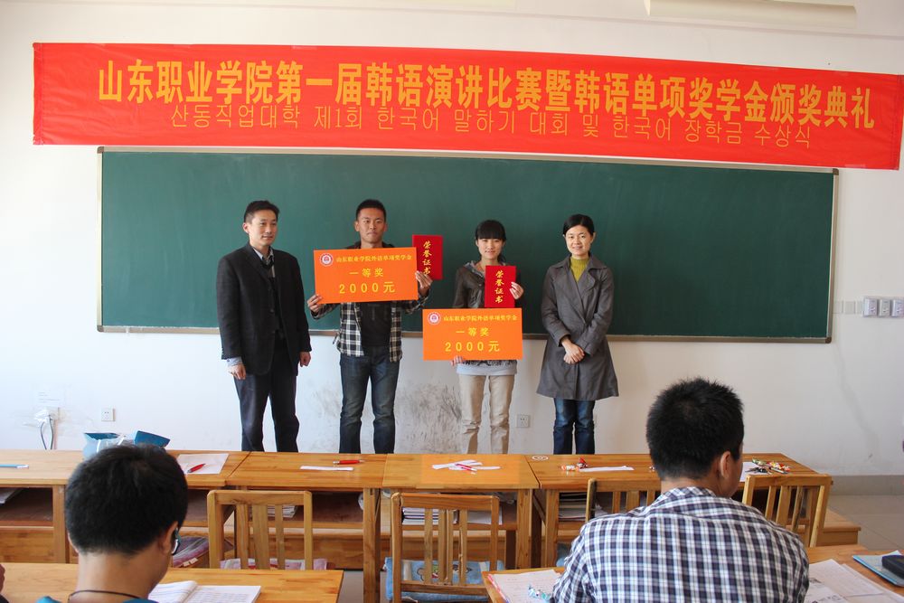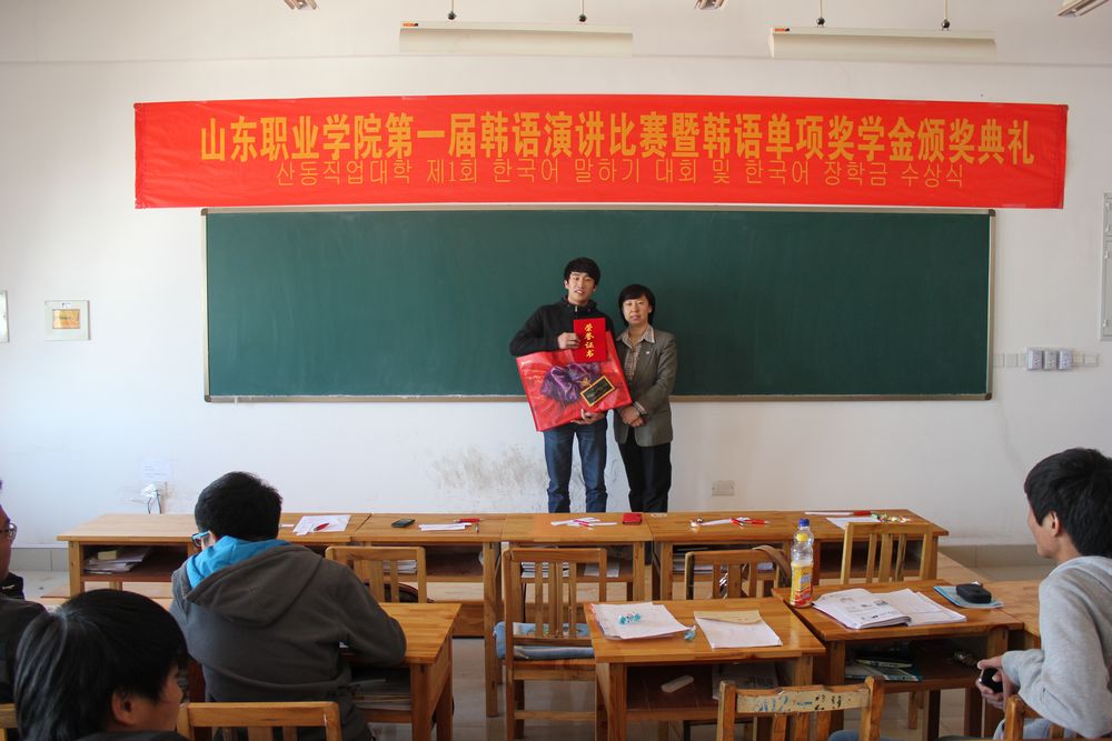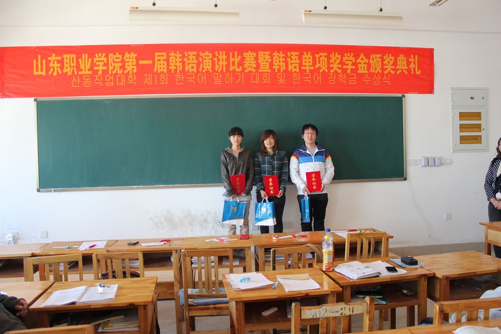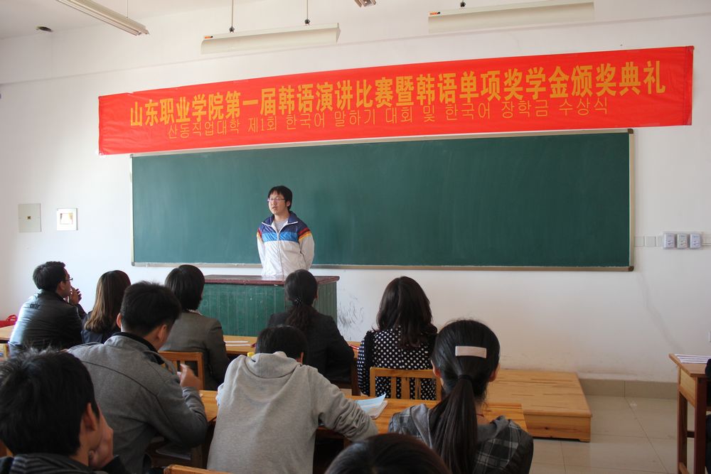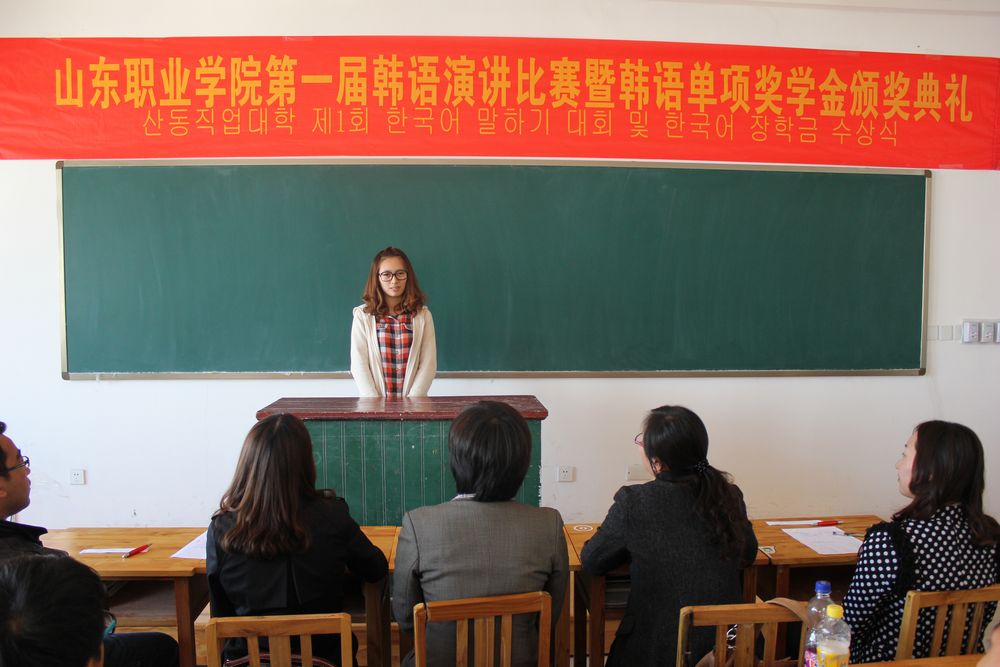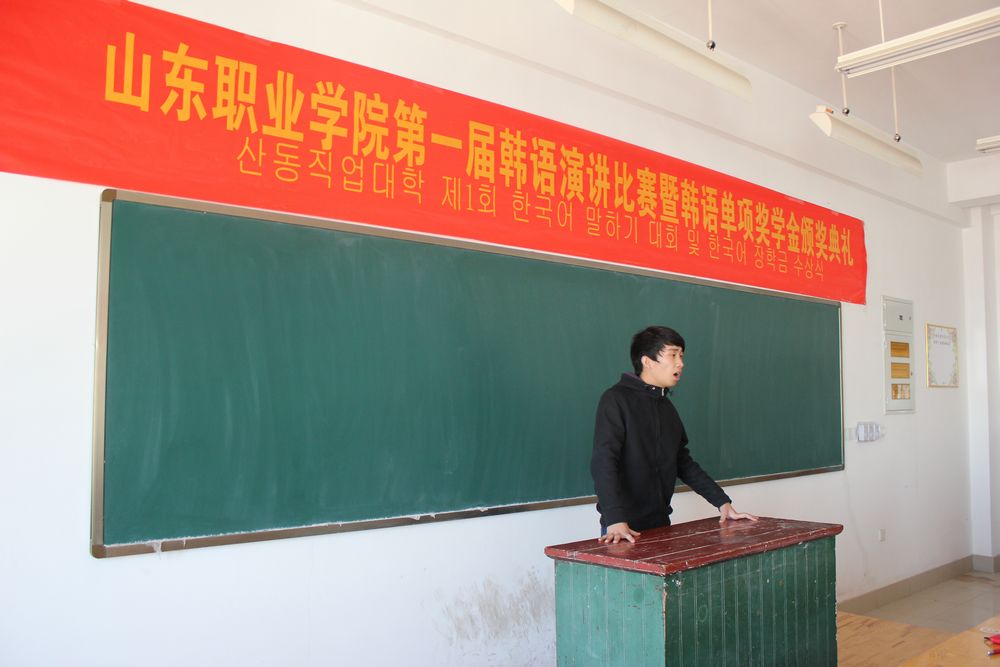 為激發(fa)中韓(han)班學(xue)(xue)生學(xue)(xue)習韓(han)語的(de)熱情(qing),掀起(qi)學(xue)(xue)習韓(han)語的(de)新風潮。同(tong)時為同(tong)學(xue)(xue)們(men)提供一個展示自我風采的(de)平臺,10月31日,國際交(jiao)流中心舉辦了山東職業學(xue)(xue)院第(di)一屆韓(han)語演(yan)講比賽暨韓(han)語單(dan)項獎學(xue)(xue)金(jin)頒獎典禮。