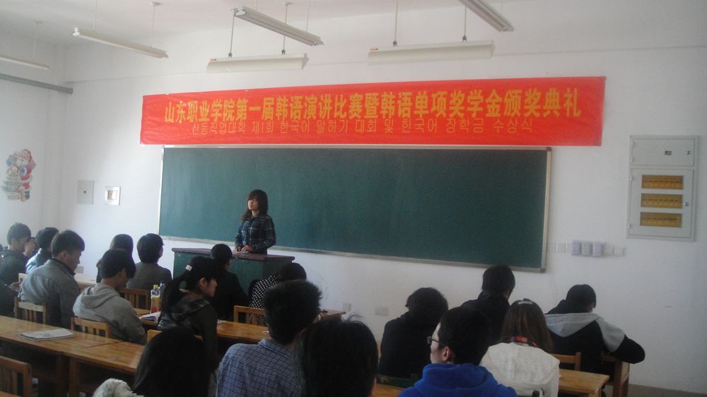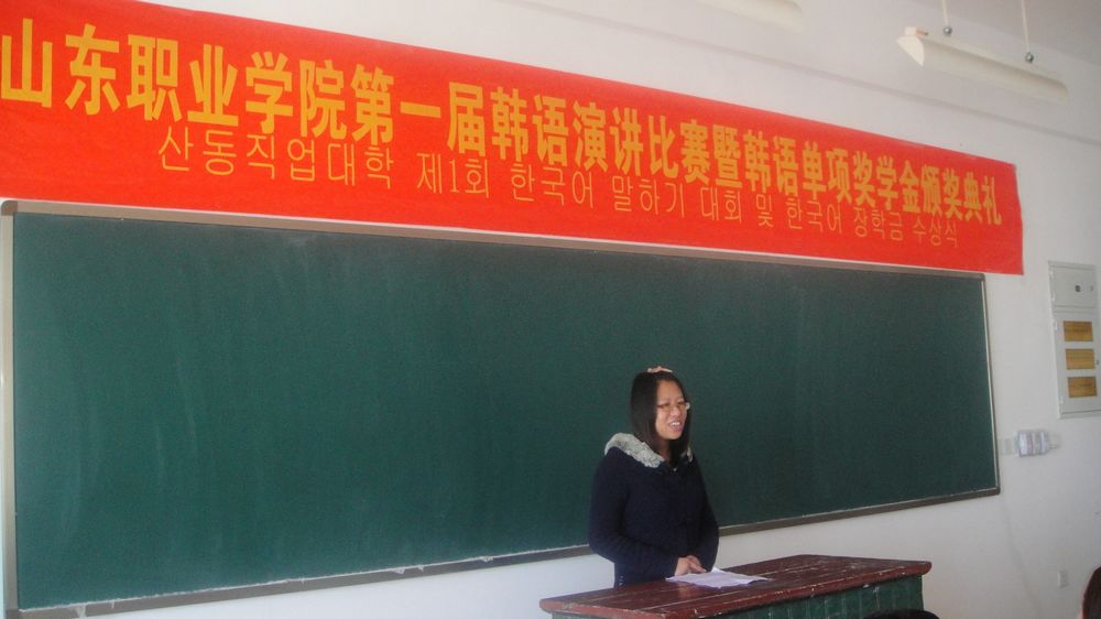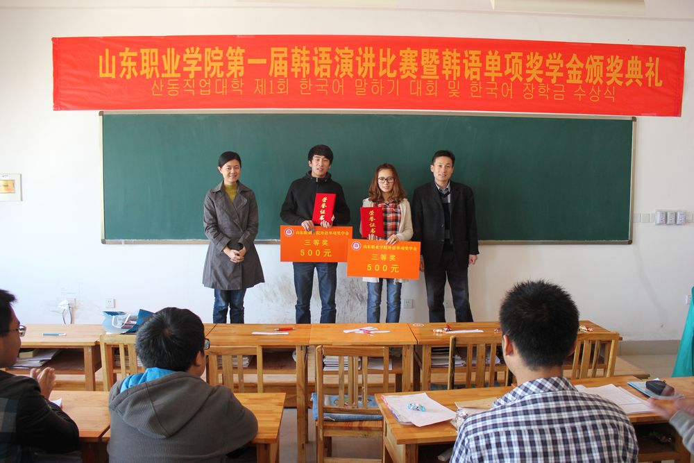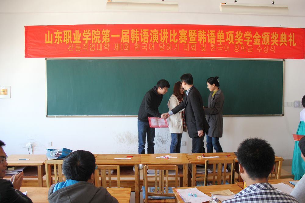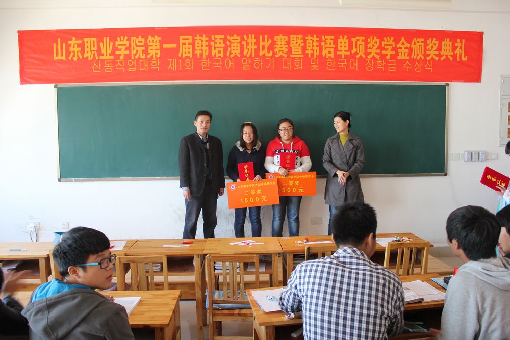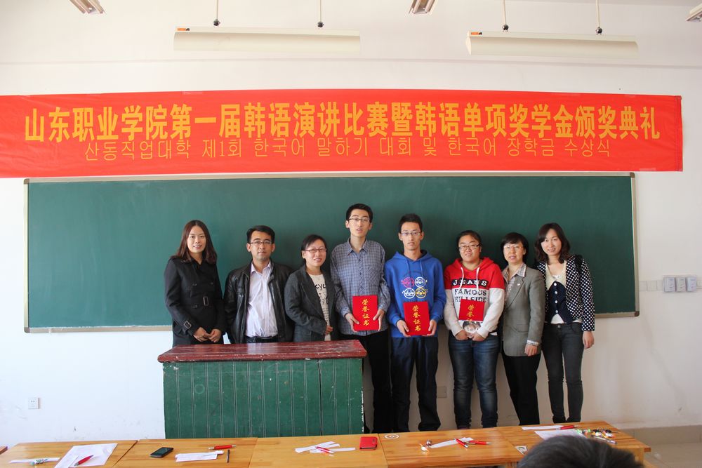 為激發(fa)中韓(han)班學(xue)(xue)生學(xue)(xue)習韓(han)語的(de)熱情(qing),掀起(qi)學(xue)(xue)習韓(han)語的(de)新風潮。同(tong)時為同(tong)學(xue)(xue)們(men)提供一個展示自我風采的(de)平臺,10月31日,國際交(jiao)流中心舉辦了山東職業學(xue)(xue)院第(di)一屆韓(han)語演(yan)講比賽暨韓(han)語單(dan)項獎學(xue)(xue)金(jin)頒獎典禮。