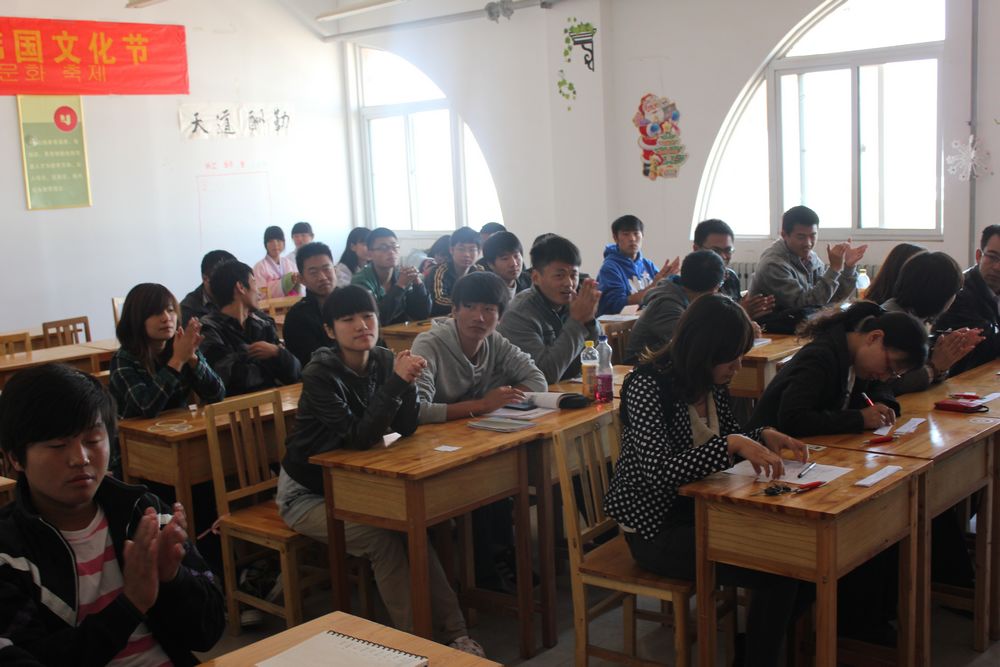 韓(han)語演講比賽由國際交流中心李彥、莊婷、郭經偉老師(shi),以及有(you)韓(han)國留學(xue)(xue)經歷的(de)李林林、榮映(ying)菡老師(shi)擔任評委。中韓(han)班(ban)大(da)(da)二學(xue)(xue)生(sheng)8名(ming)、大(da)(da)三(san)學(xue)(xue)生(sheng)1名(ming),共9名(ming)選手參(can)加了比賽。雖然決(jue)大(da)(da)部分選手是大(da)(da)二學(xue)(xue)生(sheng),僅學(xue)(xue)習了不到(dao)兩個半(ban)學(xue)(xue)期的(de)韓(han)語,但是學(xue)(xue)生(sheng)們積(ji)極準(zhun)備(bei),展示了自己的(de)韓(han)語水平,展現(xian)了良好的(de)精神面(mian)貌,讓我們看出了他們的(de)努力,看到(dao)了中韓(han)班(ban)學(xue)(xue)子的(de)風(feng)采。