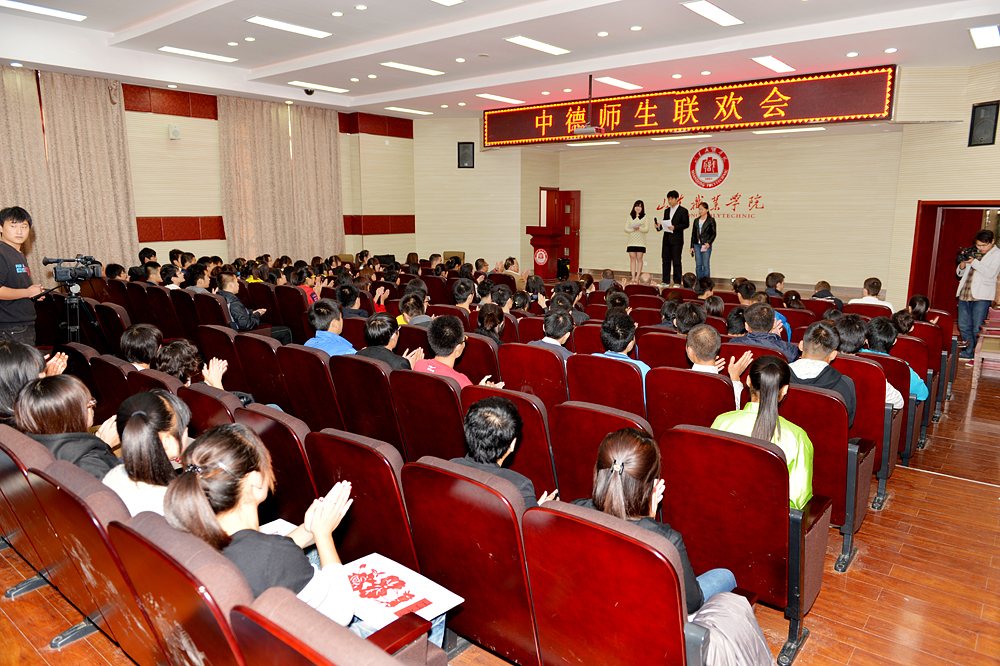 10月(yue)17日,山東職業學(xue)院報告廳內(nei)熱鬧非凡(fan),由大學(xue)生社團聯(lian)合會帶來的精彩文藝節目(mu)讓中德(de)聯(lian)歡會成(cheng)為拉近(jin)中德(de)友誼(yi),感受國粹魅力的又一見(jian)證(zheng)。學(xue)院院長(chang)鄧洪基親臨聯(lian)歡現場,在與中德(de)師生共同(tong)欣賞節目(mu)的同(tong)時(shi),還向蘭茨胡特學(xue)院的師生們贈送(song)了飽(bao)含(han)中德(de)綿長(chang)情意的書法折(zhe)扇。