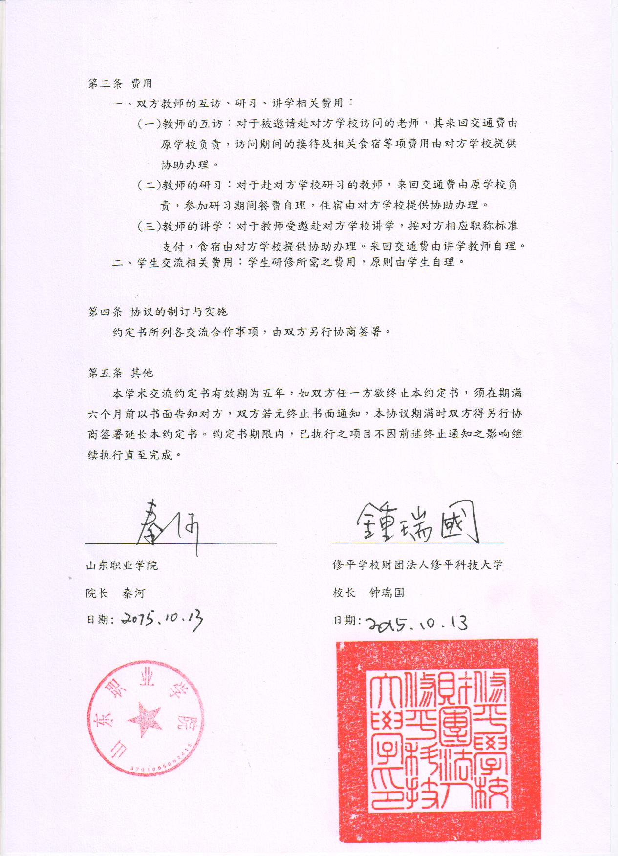 山東(dong)職(zhi)業學(xue)院與修平科技大學(xue)學(xue)術(shu)交流約(yue)定書