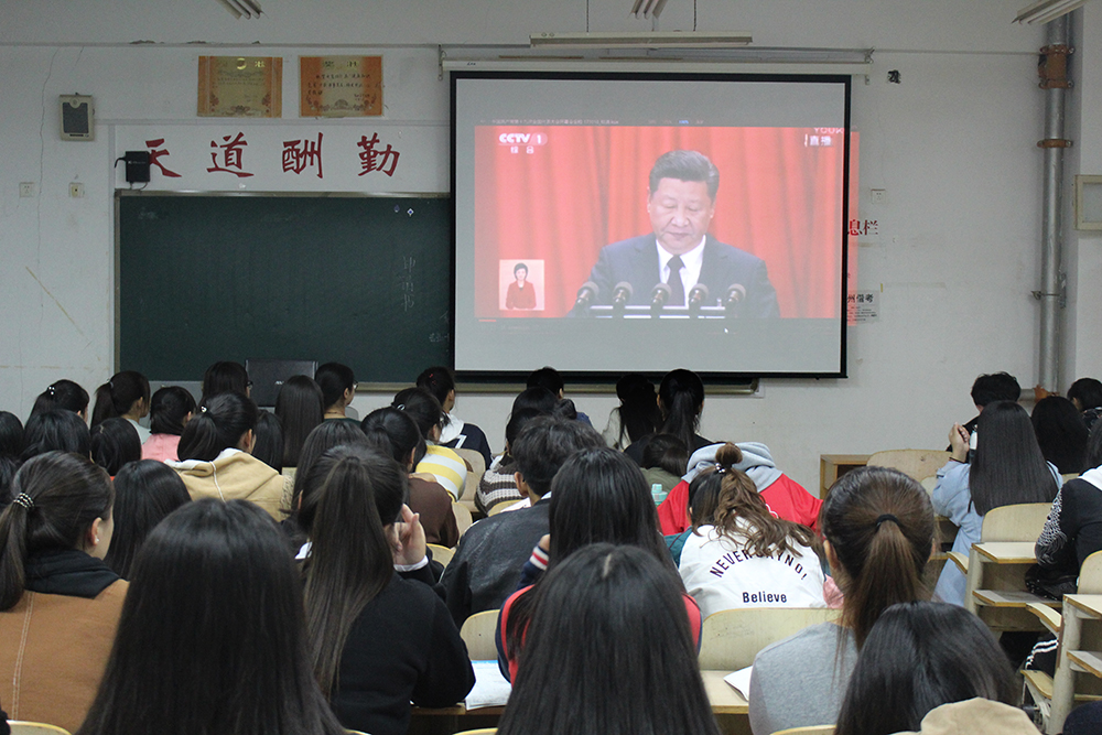 習近平總書記(ji)的報告,鼓舞人(ren)(ren)心(xin),催人(ren)(ren)奮進(jin)。同(tong)學們觀看后踴躍發言,暢談(tan)感(gan)(gan)悟感(gan)(gan)想。大家一致表(biao)示,將牢記(ji)黨(dang)的教(jiao)誨,站在時代前(qian)沿(yan),不(bu)忘初心(xin),繼續前(qian)行,在美好的青(qing)春(chun)中不(bu)斷提升自(zi)己,為祖國發展(zhan)貢(gong)獻力量。