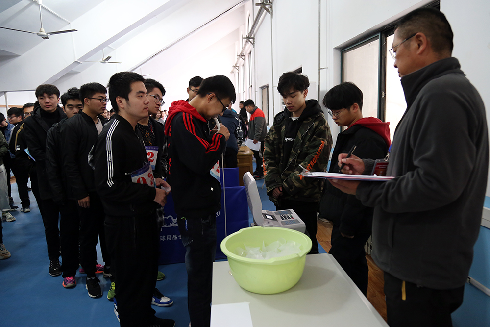 匯報(bao)會(hui)上,祝介(jie)安簡要介(jie)紹(shao)了(le)學院(yuan)情況,趙龍就(jiu)學院(yuan)體(ti)(ti)育教學及體(ti)(ti)質測(ce)試工作做詳(xiang)細匯報(bao)。會(hui)議后,專家(jia)組成(cheng)員(yuan)(yuan)來到測(ce)試場(chang)地(di)對抽測(ce)的70名學生(sheng)進(jin)行現場(chang)數據采集,體(ti)(ti)育教研(yan)室許春光等六位教師以及城市軌(gui)道交通系輔(fu)導(dao)員(yuan)(yuan)叢(cong)樹勝(sheng)輔(fu)助專家(jia)組成(cheng)員(yuan)(yuan)完成(cheng)了(le)包括身高、體(ti)(ti)重(zhong)、肺活量(liang)、坐(zuo)位體(ti)(ti)前屈、跳遠、仰臥(wo)起坐(zuo)(女生(sheng))、引體(ti)(ti)向上(男(nan)生(sheng))、50米、800米(女生(sheng))、1000米(男(nan)生(sheng))十(shi)項體(ti)(ti)測(ce)數據的采集工作。