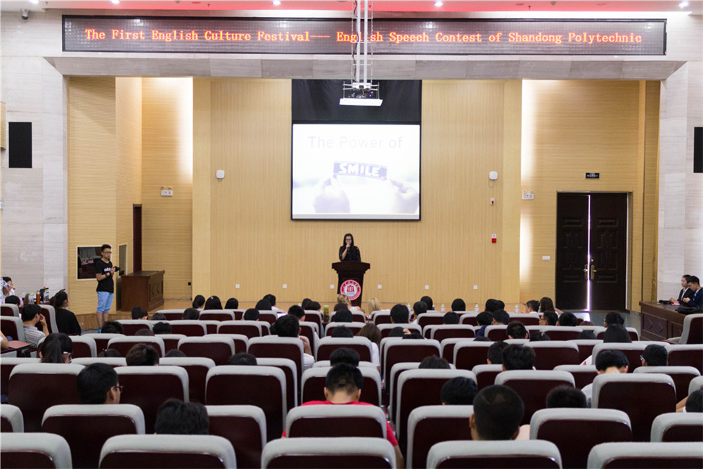 On the afternoon of May 18, the English Speech Contest entitled “The Power of Smile” launched the First English Culture Festival of Shandong Polytechnic, which was held in the East Lecture Hall. Guo Peng, vice president of the college, attended the opening ceremony and delivered a speech. The distinguished guests present include Mr. Jia Mingbin, dean of the Department of General Studies; Mr. Wang Wei, secretary of the Communist Youth League; Mr. Lv Ziquan, director of the International Exchange Center.