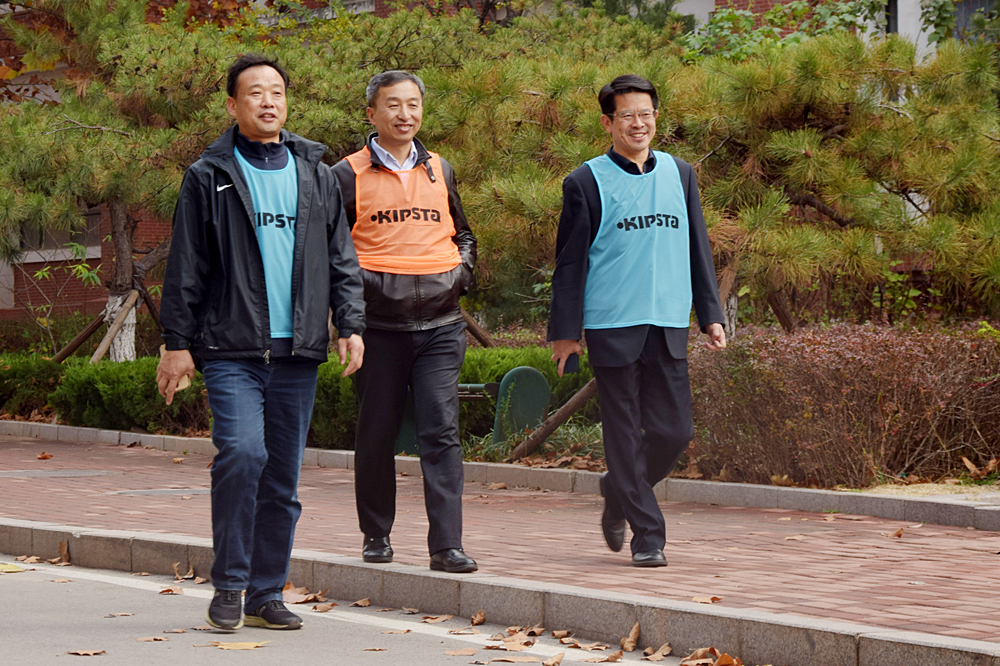 惠風和暢,碧空如洗。11月13日,全院300多名教職員工身穿亮麗的(de)跑步(bu)馬甲,精(jing)神抖(dou)擻地齊聚校園(yuan)操場,期待一(yi)場健康與活力的(de)運動盛宴。隨著清脆(cui)的(de)發(fa)令槍(qiang)響,參賽(sai)隊伍浩(hao)浩(hao)蕩(dang)蕩(dang)從賽(sai)道起(qi)點(dian)出發(fa),場面(mian)蔚為壯觀。接下來,選(xuan)手們將(jiang)環繞校園(yuan)兩圈,整個賽(sai)程接近4公里(li),這(zhe)是對毅力與體力的(de)極大考驗。