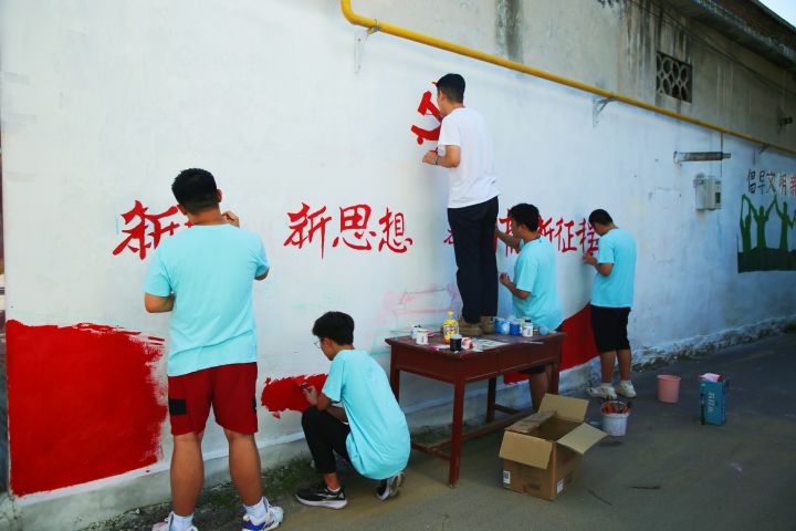 驕陽似火(huo)(huo)斗(dou)酷暑、揮(hui)汗如雨(yu)戰高溫。成(cheng)員們(men)用(yong)勤(qin)(qin)勞(lao)的(de)雙手和辛勤(qin)(qin)的(de)汗水投身到火(huo)(huo)熱的(de)社會實踐(jian),此次(ci)志愿(yuan)墻繪活動不僅讓鄉村(cun)換(huan)了“新(xin)顏(yan)”提(ti)升了“氣(qi)質”,也讓同學們(men)“美育”與“勞(lao)育”得以雙向發展,彰(zhang)顯了新(xin)時代大學生的(de)青春風采。